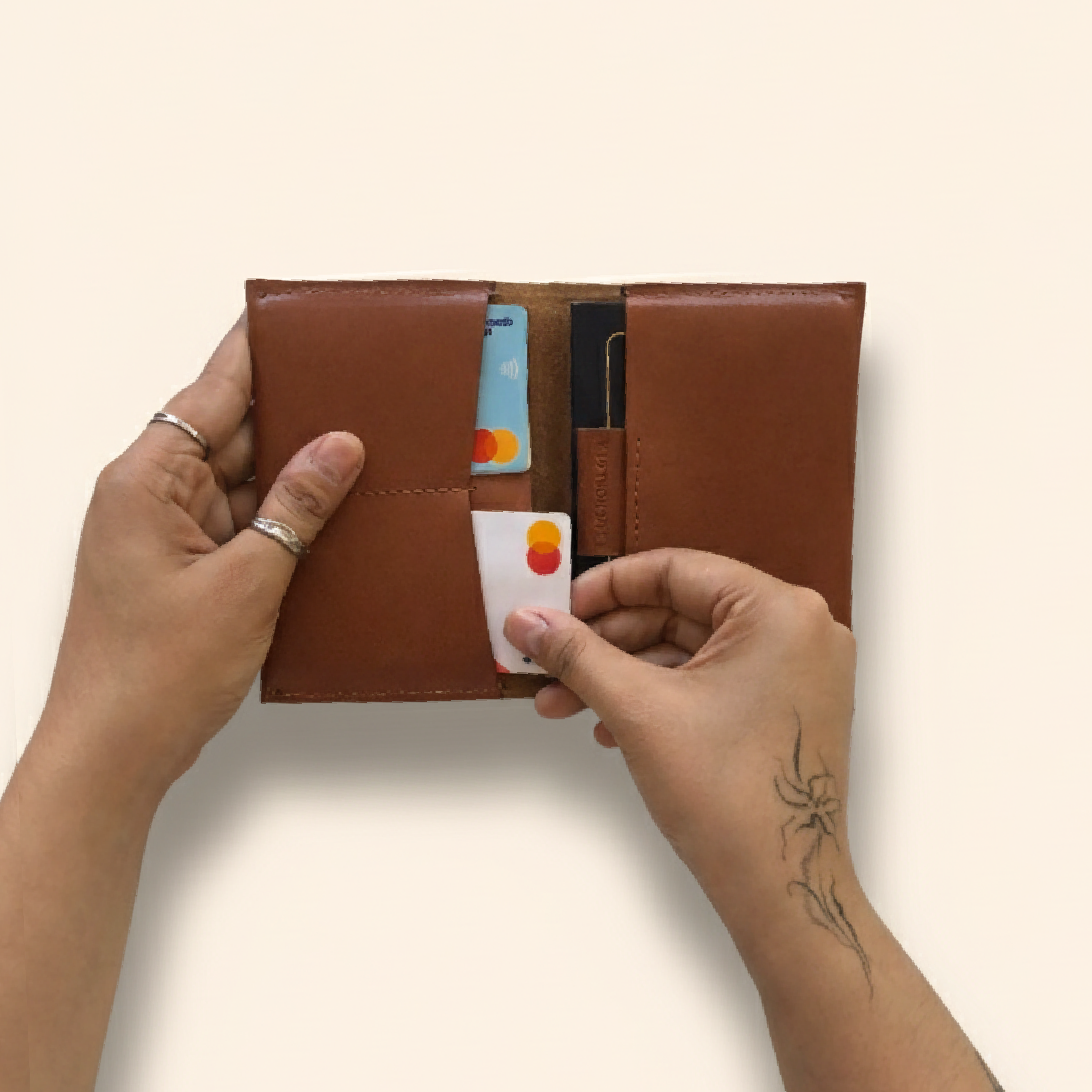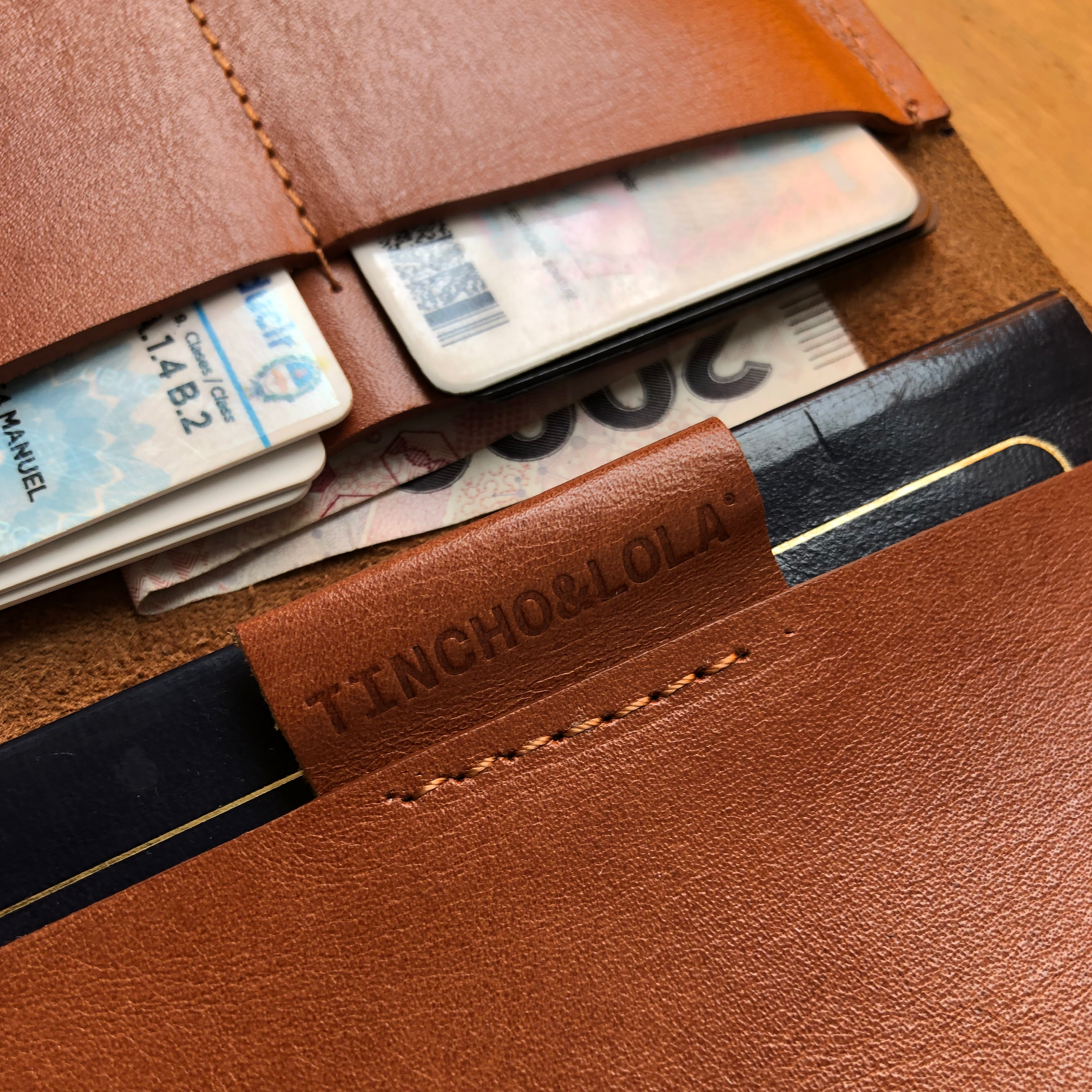 Cuenta con espacios para pasaporte, DNI, registro, tarjetas, billetes y pases. Cada bolsillo está diseñado para acceder rápido sin perder orden.