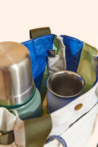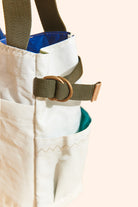 La Oberá Tote es ideal para llevar mate y comida en actividades al aire libre como playa, montaña, o picnics. Es una bolsa matera práctica y resistente fabricada con velas de barco recicladas. Tiene correas reforzadas, un bolsillo frontal , dos guanteras laterales para botellas y termos, y un bolsillo interior pequeño para llevar la bombilla del mate.